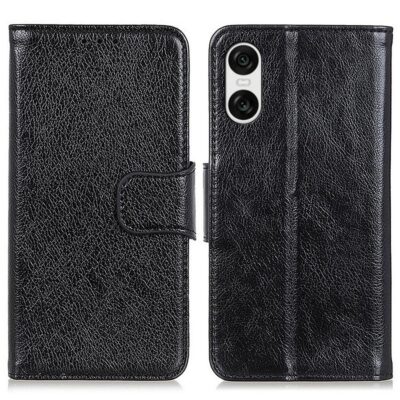 Tyylikäs nahkakotelo Sony Xperia 10 VI älypuhelimen kestävään suojaamiseen, upean kiiltäväpintaiset kannet ja ajaton musta väritys.