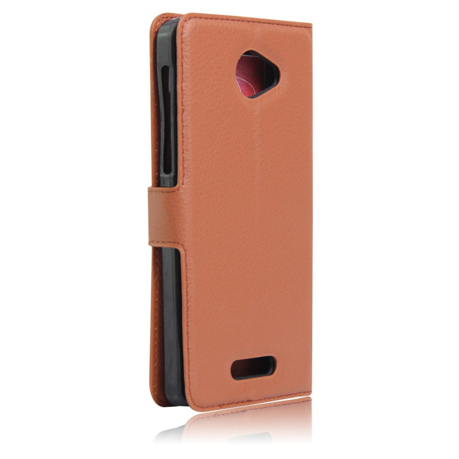 Suojaa Alcatel Pop 4S älypuhelin tyylikkäällä ruskealla lompakko suojakotelolla iskuilta, kolhuilta ja putoamisilta.