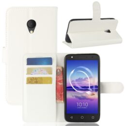 Tyylikäs valkoinen lompakko mallinen kotelo auttaa suojaamaan Alcatel U5 HD älypuhelimen iskuilta, naarmuilta ja putoamisilta.