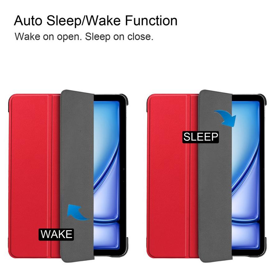 Apple iPad Air 11″ tabletille sopiva kotelo suojaa kattavasti rikkoutumiselta ja tuo ilmeeseen kauniina erottuvan kirkkaanpunaisen värityksen.