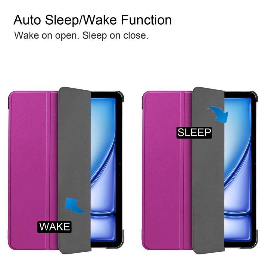 Ihastuttavan violetin sävyinen kotelo on vahva ja miellyttävän keveä vauriot estävä suoja Apple iPad Air 11″ -tabletille.