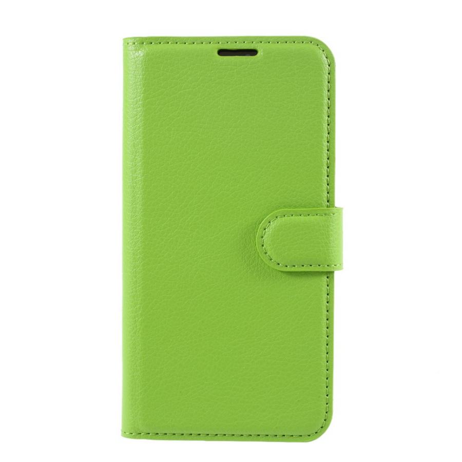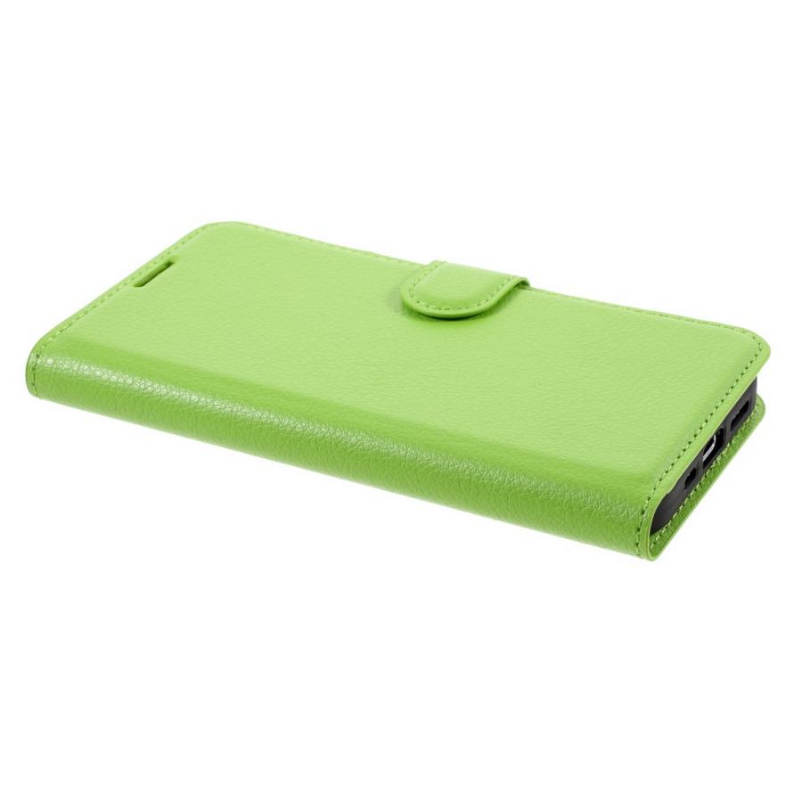 Apple iPhone 12 / 12 Pro puhelinmalleille iloinen kirkkaan vihreä lompakkokotelo, jossa laite säilyy käyttökunnossa ja rikkoutumatta.