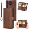 Elegantti lämpimän sävyinen ruskea lompakko tuo hyvän suojauksen Apple iPhone 12 Pro Max puhelimelle ja siinä on mukavasti tilaa maksuvälineille.