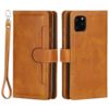 Upeasti muotoiltu ja vaaleasävyisen ruskea lompakkokotelo Apple iPhone 14 Pro Max suojaamiseen vahingoittumiselta.