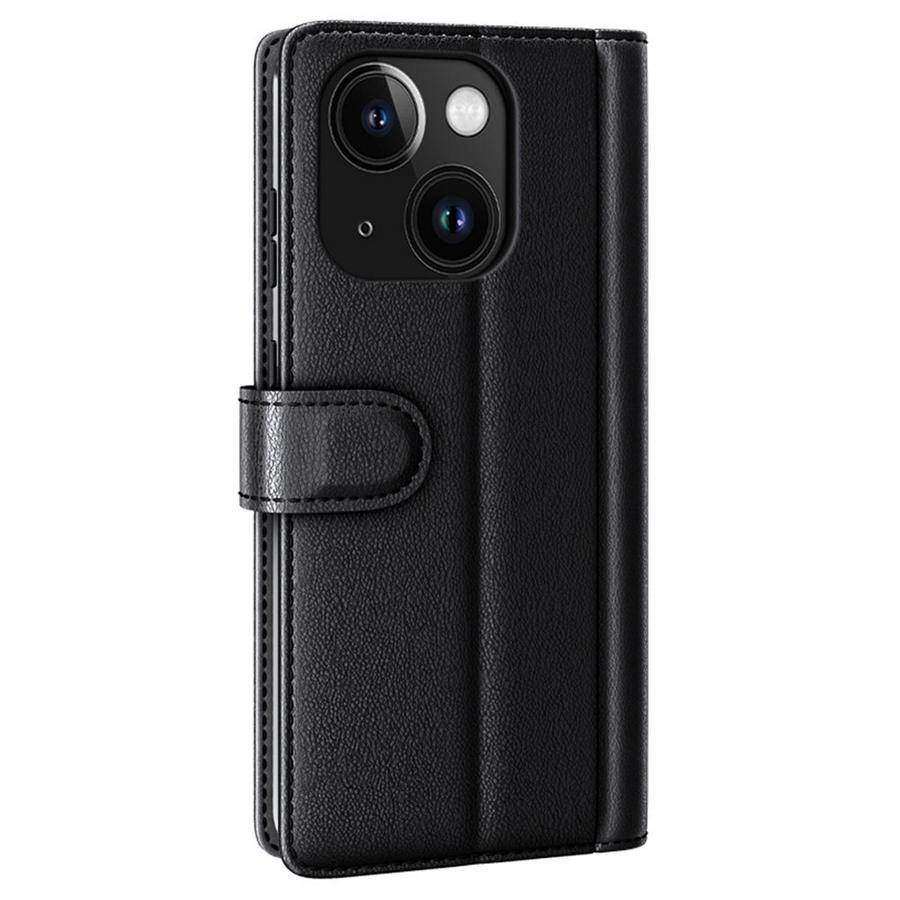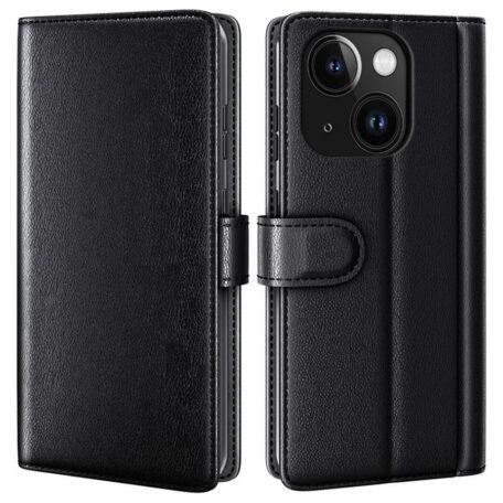 Ajattoman tyylikäs musta väri ja kaunis muotoilu tilavassa lompakossa, joka suojaa Apple iPhone 15 puhelinmallia vaurioilta.