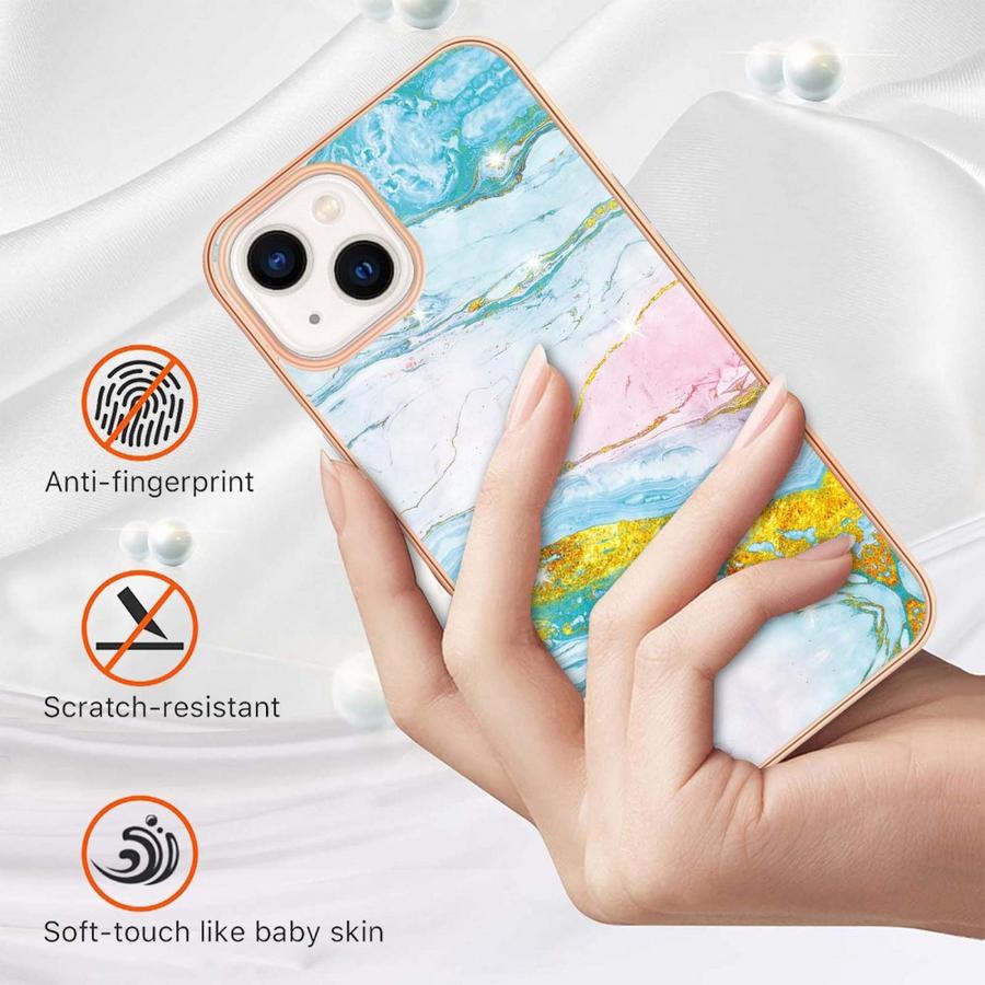 Upea takakuori heleän värisillä marmoroiduilla kuvioinneilla, napakka suojaus osumilta sekä kolahduksilta Apple iPhone 15 Plus -älypuhelimellesi.