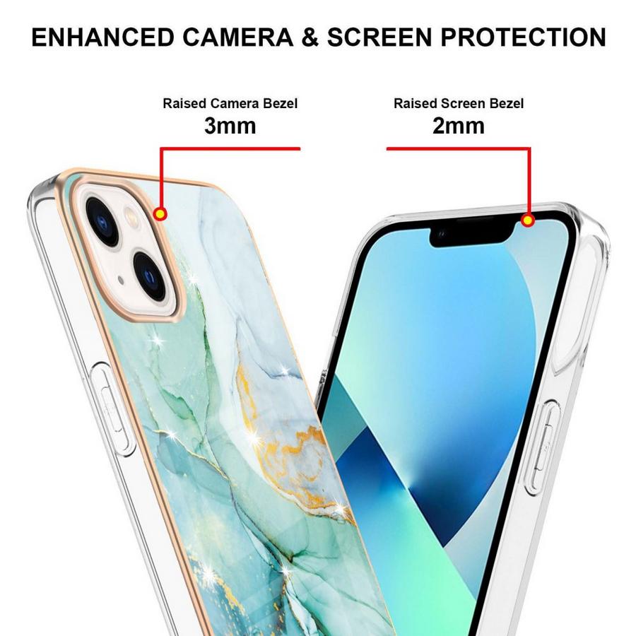 Kestävä takakuori, jossa on raikas turkoosin värinen marmorikuviointi, tarjoaa lujan suojan ja ihanan ulkoasun Apple iPhone 15 Plus -puhelimellesi.