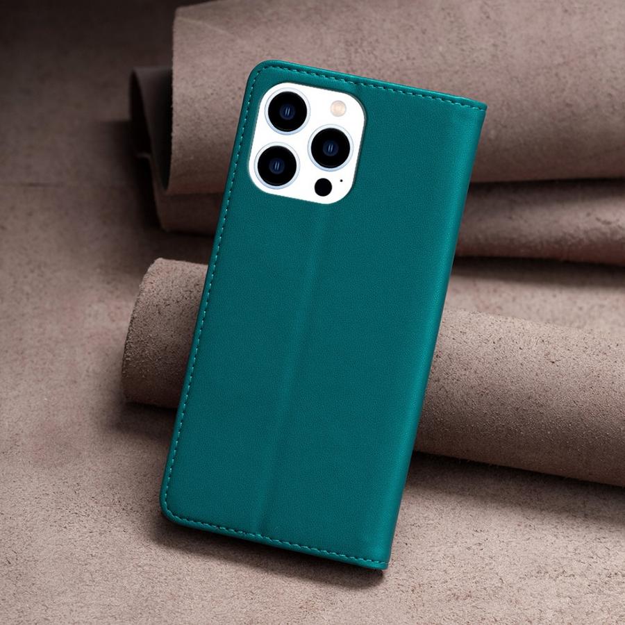 Pelkistetyn tyylikäs kotelomalli hillityssä vihreässä värityksessä soveltuu suojaamaan Apple iPhone 15 Pro Max älypuhelinta vahingoilta.