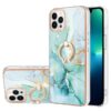 Vahingoilta ja naarmuilta suojaava takakuori Apple iPhone 15 Pro puhelimelle, raikkaan turkoosit värisävyt marmorikuvioinnissa.