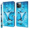 Apple iPhone 15 Pro älypuhelimelle soveltuva suojaava kotelo, jonka kansien vaaleansinisessä kuvioinnissa liitelevät perhoset.