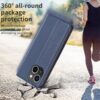 Hillityn tyylikkääseen sinisen sävyyn puettu, linjakkaan mallinen kotelo, joka suojaa kauttaaltaan Apple iPhone 15 -älypuhelinta.