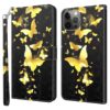 Perhosparven kuvioima tummapintainen lompakkokotelo on mitä kaunein suoja Apple iPhone 15 puhelimen turvaksi särkymiseltä.