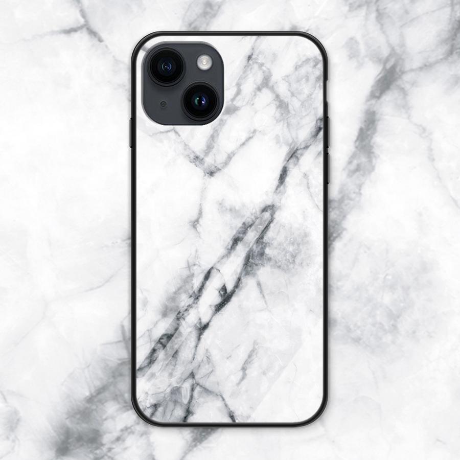 Apple iPhone 15 puhelinmallille soveltuva takakuori suojaa vahingoilta ja valkea marmoroinnein kuvioitu pinta luo ylellisen ulkoasun.