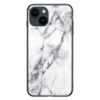 Apple iPhone 15 puhelinmallille soveltuva takakuori suojaa vahingoilta ja valkea marmoroinnein kuvioitu pinta luo ylellisen ulkoasun.