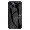 Apple iPhone 15 puhelinmallia suojaavan takakuoren tummaa pintaa elävöittää kauniin valkeana risteilevä marmorikuviointi.