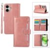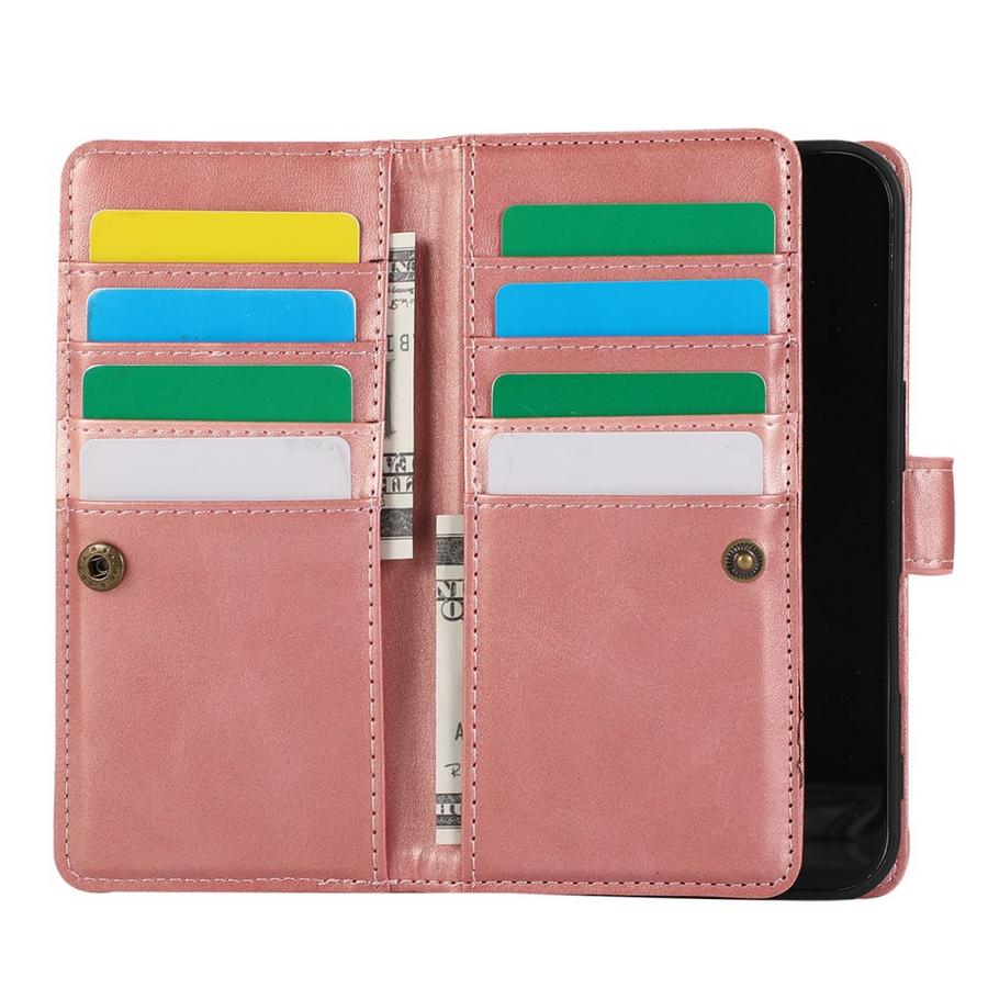 Ihana lompakko suojaa Apple iPhone 16 puhelimen vahingoilta, se on tilava ja erityisen kaunis ruusukullan värissä hohtavana.