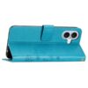 Petrolinsävyinen, sinisen värinen ja ihastuttavasti painamalla kuvioitu kotelo, joka suojaa Apple iPhone 16 Plus puhelinta vahingoittumiselta.