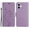 Sievästi kukkaköynnöksellä ja perhosilla kuvioitu vaaleanvioletti kotelo on kattava rikkoutumisen suoja Apple iPhone 16 Plus puhelimelle.