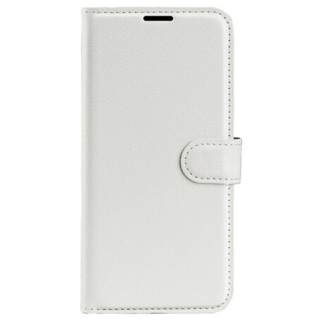 Elegantti puhtaanvalkoinen lompakkokotelo suojaa Apple iPhone 16 Plus -älypuhelimen osumien ja putoamisten tekemiltä vahingoilta.
