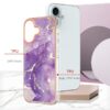 Upeasti violettina pyörteilevä marmorikuviointi tuo puhelimelle ihanan ilmeen ja vankka kuori suojaa tehokkaasti Apple iPhone 16 Plus mallia.