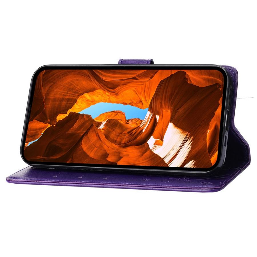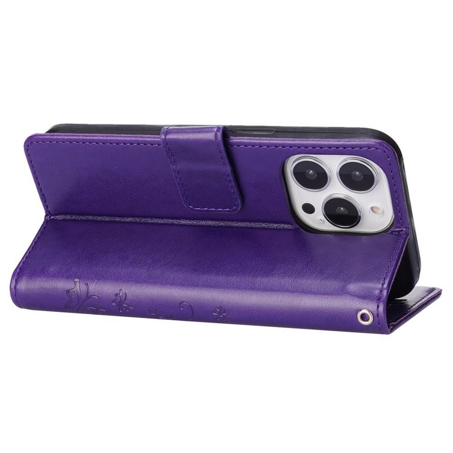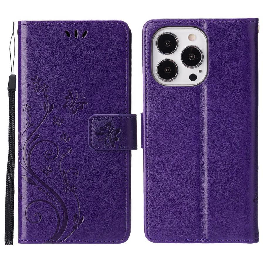 Tummaan violettiin puetun kotelon ihastuttavina yksityiskohtina perhosia ja kukkia, vaurioitumisen suoja Apple iPhone 16 Pro Max puhelimelle.
