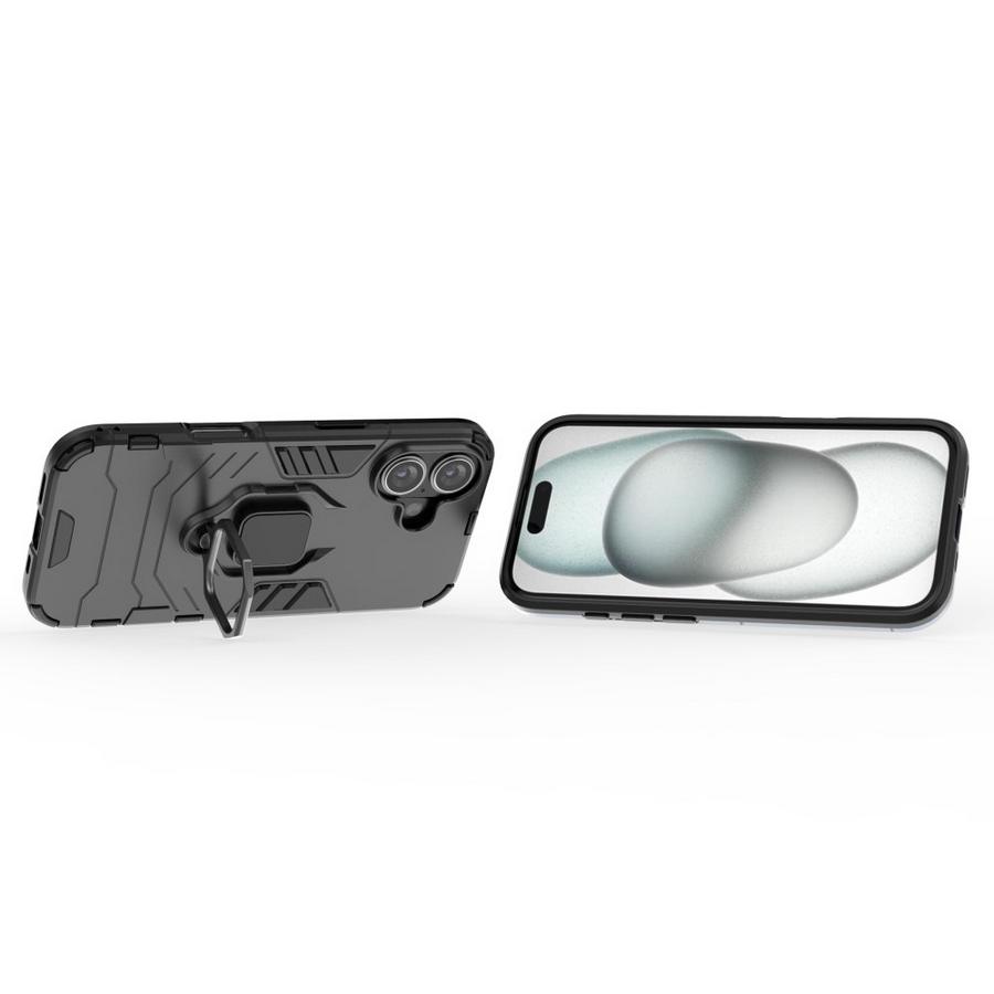 Käytännöllisin ominaisuuksin varustettu musta takakuori Apple iPhone 16 älypuhelinmallille on vahva suoja rikkoutumiselta.