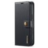 Koko lompakko sulkeutuu magneettisella läpällä ja korttipuolen saa kiinnitettyä erikseen nepparilla.
