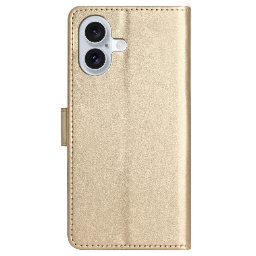 Kultaisissa kansissa hohtava ja ihanin painokuvoin somistettu kotelomalli Apple iPhone 16 puhelimen suojaamiseen rikkoutumiselta.