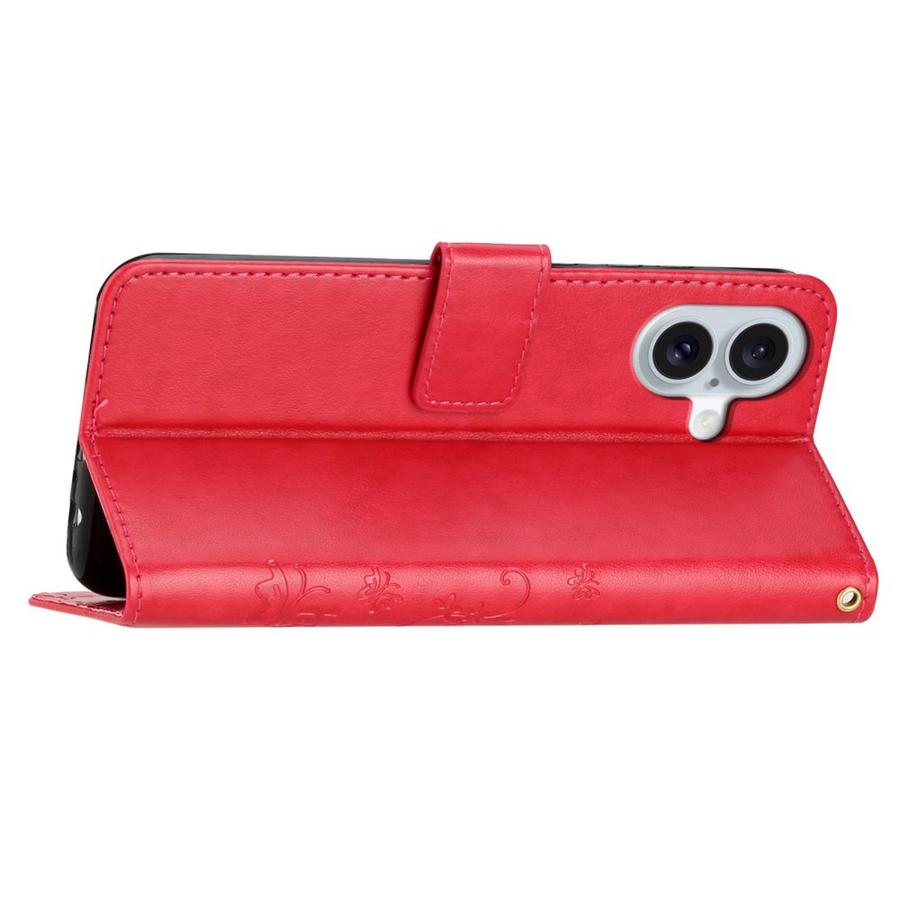 Ihastuttavasti erottuva punakantinen ja lompakkomallinen suojakotelo estämään Apple iPhone 16 -älypuhelimen rikkoutuminen.