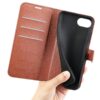 Vahingoilta ja naarmuilta suojaava lompakkomallinen kotelo Apple iPhone 16e / 17e puhelimen turvaksi, värityksenä lämmin ruskean sävy.