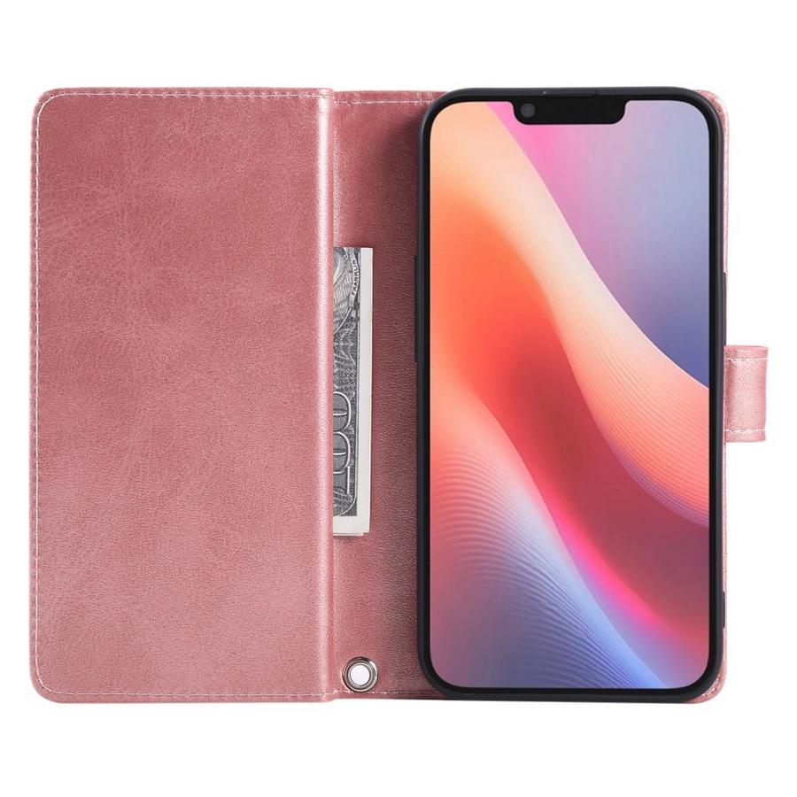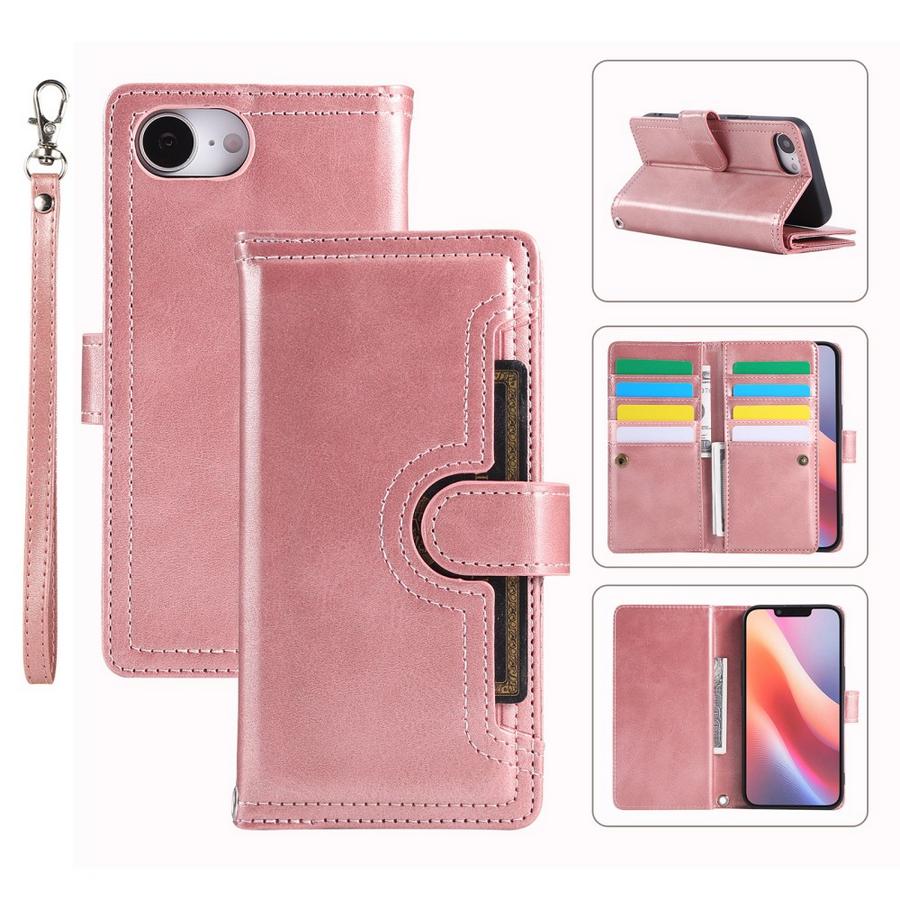Ihana lompakko suojaa Apple iPhone 16e puhelimen vahingoilta, se on tilava ja erityisen kaunis ruusukullan värissä hohtavana.