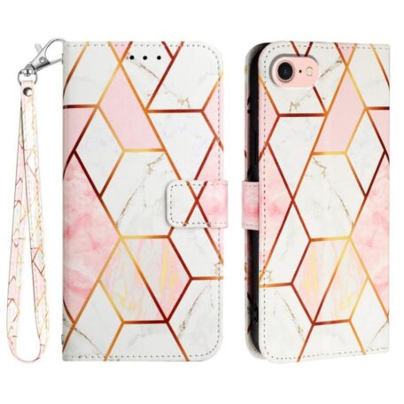 Ihanissa värisävyissä marmoroitujen kuviointien somistama lompakkomallinen suojakotelo Apple iPhone 16e / 17e -älypuhelimelle.