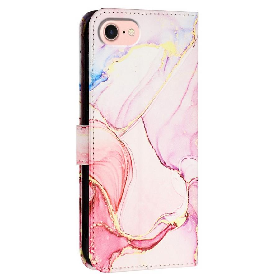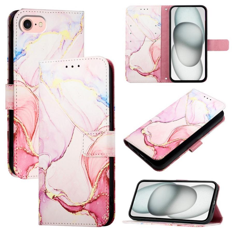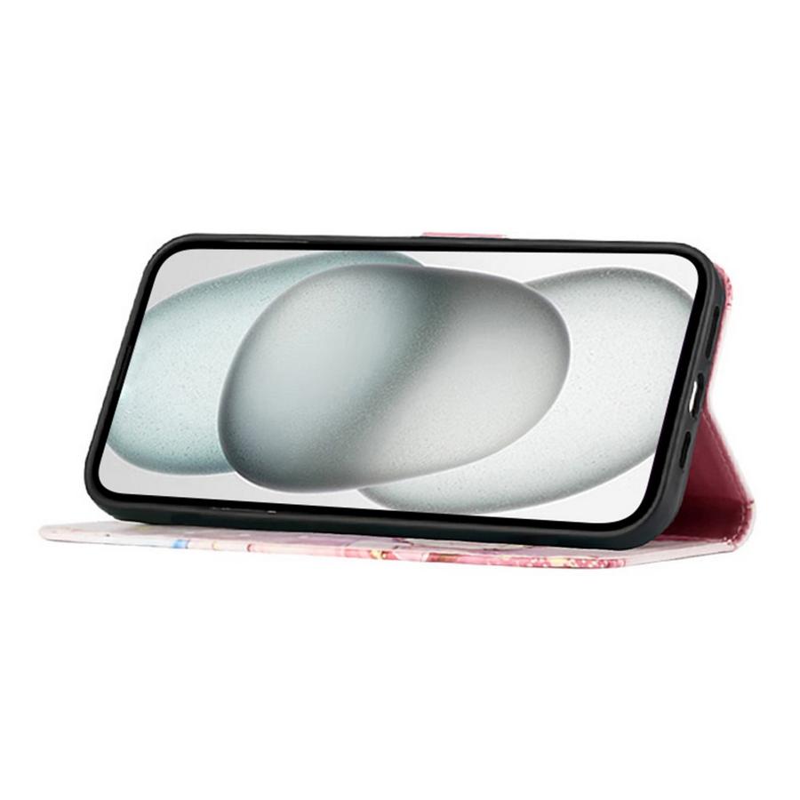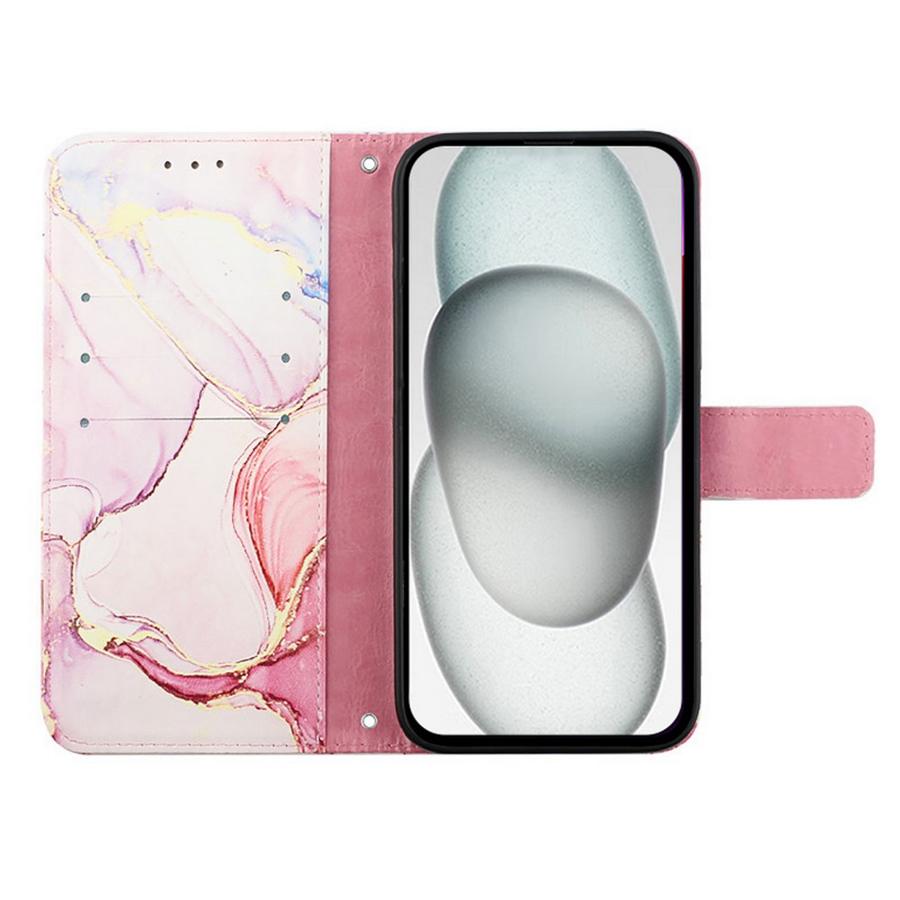 Ihanissa värisävyissä marmoroitujen kuviointien somistama lompakkomallinen suojakotelo Apple iPhone 16e -älypuhelimelle.