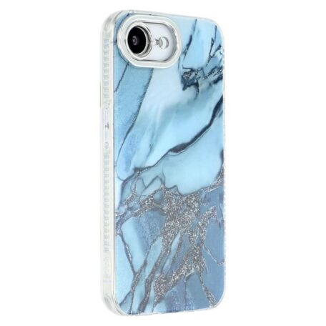 Ihastuttavan marmoroitu ja heleissä sinisen sävyissä kuvioitu napakka takakuori Apple iPhone 16e puhelimen suojaamiseen rikkoutumiselta.