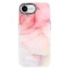 Apple iPhone 16e / 17e puhelimelle liukuvien punasävyisten marmorointien somistama takakuori on napakka suoja vaurioilta.