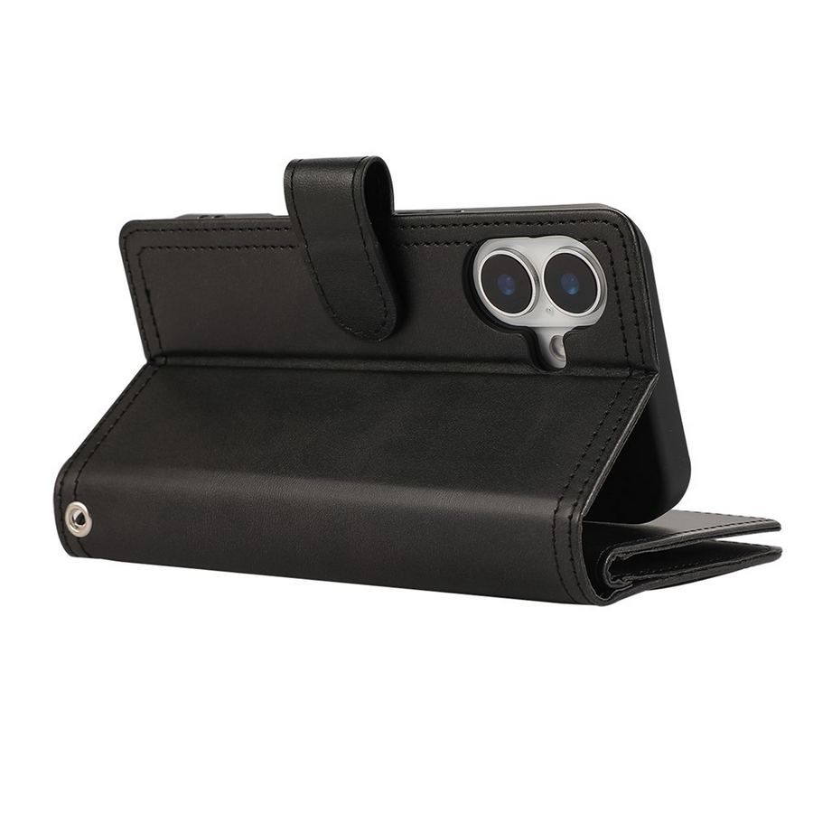 Tilava, ajattoman musta lompakko Apple iPhone 17 puhelimelle, suunniteltu tarjoamaan tyylikäs ulkonäkö ja hyvä suojaus.