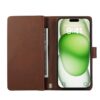 Luonnollisen tummasävyisen ruskea lompakko tuo hyvän suojauksen Apple iPhone 17 puhelimelle ja siinä on erinomaisesti tilaa maksuvälineille.