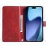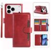 Apple iPhone 17 Pro puhelinmallia vahingoilta suojaava ja varsin tilava, eleganttina erottuva punaisen värinen lompakko.