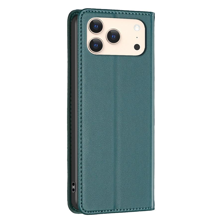 Vihreän tumma ja hillityn kaunis värisävy Apple iPhone 17 Pro -älypuhelimelle sopivassa elegantin pelkistetysti muotoillussa kotelossa.