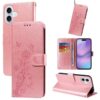 Apple iPhone 17 puhelimelle tehokkaasti suojaava ja ilmeeltään suloinen kotelomalli vaaleanpunaisilla painaen somistetuilla kansilla.