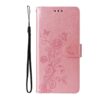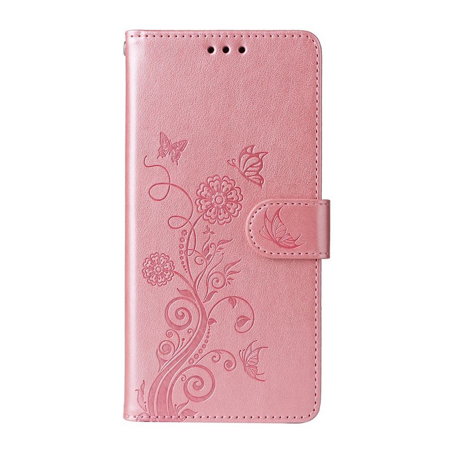 Kukkien ja perhosten kuvioima, soman värinen suojakotelo puhelimesi turvaksi.