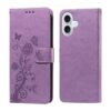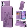 Sievällä kukkaköynnöksellä ja perhosilla kuvioitu vaaleanvioletti kotelo on kattava rikkoutumisen suoja Apple iPhone 17 puhelimelle.
