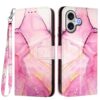 Rikkoutumisen estävä lompakkokotelo Apple iPhone 17 -puhelimelle, kansissa sievät pinkinsävyt kauniisti marmorikuvioituna.