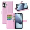 Suloinen vaaleanpunainen lompakkokotelo, joka suojaa napakasti Apple iPhone 17 -älypuhelinmallin osumilta ja putoamisilta.