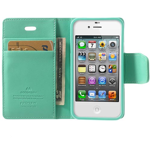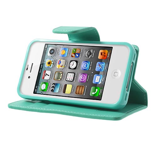 Laadukas syaanin värinen Goospery Sonata Diary lompakkokotelo Apple iPhone 4 ja Apple iPhone 4S puhelimiin.