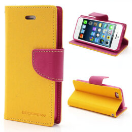 Upea ja laadukas keltainen Mercury Goospery Fancy Diary lompakkokotelo, jossa on pinkki sisäosa.