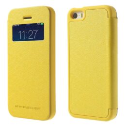 Suojaa Apple iPhone 5 / 5s / SE älypuhelin iskuilta ja kolhuilta keltaisella ohuella Goospery Wow Bumper suojakuorella.