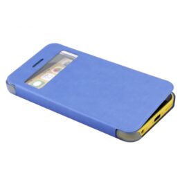Ohut sininen ikkunallinen läppäkuori Apple iPhone 5C puhelimeen.