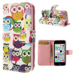 Hauskalla pöllö kuvioisella lompakko suojakotelolla suojaat Apple iPhone 5C puhelimen iskuilta ja naarmuilta.