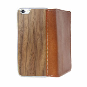Puhelimenkuoret.fi verkkokaupasta tilaat tyylikkään ja laadukkaan Lastun ruskea nahka / pähkinä puu lompakkokotelon Apple iPhone 6 Plus puhelimeen.